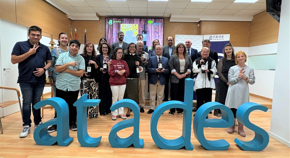 Los beneficios que se obtengan con la venta del Vino de la Amistad 2025 se destinarán concretamente a los proyectos de inserción sociolaboral de ATADES y sus centros especiales de empleo. La presentación se ha celebrado en la Confederación de Empresarios de Aragón (CEOE Aragón).