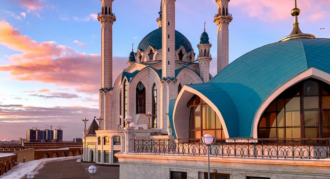 Al atardecer, cuando la luz dorada acaricia las cúpulas azules, el lugar adquiere una atmósfera casi irreal.