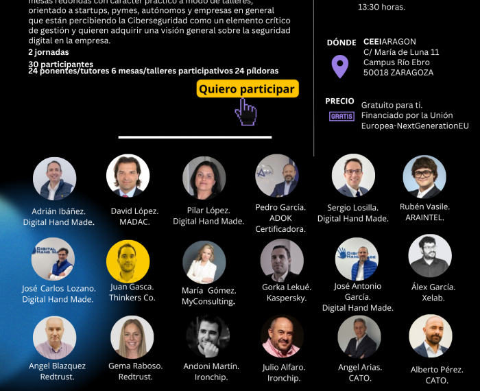 Zaragoza acogerá los días 16 y 17 de diciembre un encuentro intensivo sobre ciberseguridad aplicada al entorno empresarial Laboratorio Ciber 2025 es un evento clave dentro del itinerario formativo de captación del programa Cyber Up, impulsado por Instituto Nacional de Ciberseguridad (INCIBE) junto a CEEI Aragón. La transformación digital ha multiplicado las oportunidades