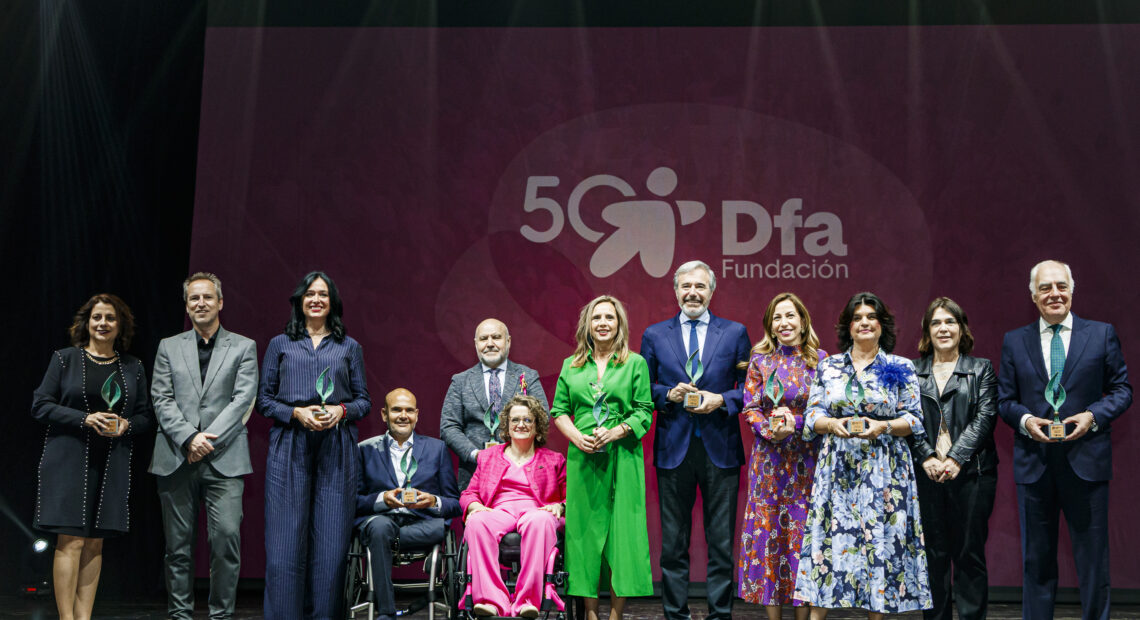 Cerca de un millar de personas han acompañado a la entidad en una celebración que ha reconocido cinco décadas de avances en inclusión La Sala Multiusos del Auditorio Princesa Leonor de Zaragoza ha acogido este miércoles la gala especial del 50 aniversario de Fundación Dfa, una edición