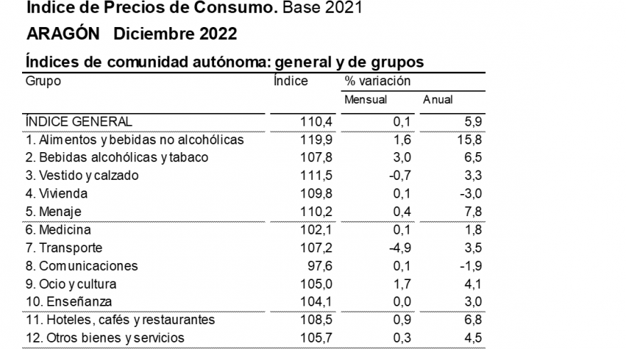 Esta cifra es un punto porcentual y una décima inferior a la del mes precedente La inflación subyacente aceleraba ocho décimas en diciembre hasta el 7,0% anual en la Comunidad Autónoma La tasa anual de inflación en el mes de diciembre se situó en el 5,9% anual en Aragón, lo que supone una desaceleración de […]