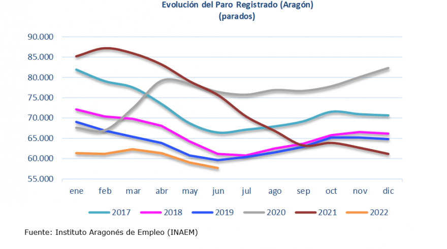 El paro registrado se sitúa en 57.595 personas en Aragón, la cifra más baja desde septiembre de 2008