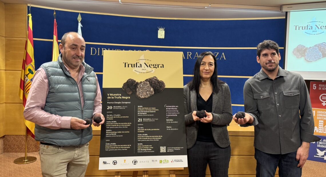 Las jornadas de inmersión en territorio se celebran este fin de semana en Belchite (sábado 13) y Zuera (domingo 14) e incluirán mercados de trufa fresca, charlas y showcookings en torno a la Tuber melanosporum El 20 y 21 de diciembre se celebrará la V Muestra de la Trufa Negra de la Provincia